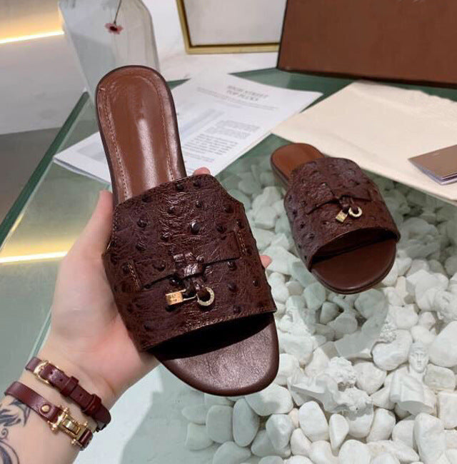Zapatillas planas de piel